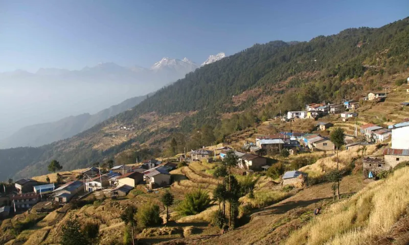 The path winds through traditional Tamang villages and terraced farmlands, crossing several small streams and ridges. You'll pass through Pathi Bhanjyang and Gul Bhanjyang, experiencing the peaceful mountain atmosphere and local rural life. The trek takes approximately 6-7 hours, with stunning views of the surrounding peaks and valleys as you approach Kutumsang village for an overnight stay.